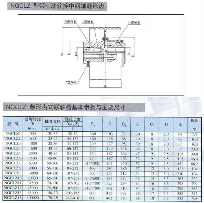 NGCLZ型帶制動(dòng)輪接中間軸鼓形齒式聯(lián)軸器